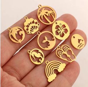 Handmade 18K Gold Flower Animal Plant Series Pendant New Stainless Steel Mirror Polishing Fashion Accessories Tropical Series